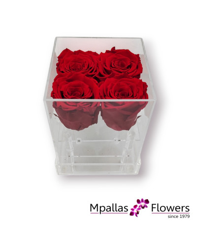 Σύνθεση σε κουτί με Ορχιδέες Cymbidium σε ροζ χρώμα , Σολιτάνγκο και διάφορα φυλλώματα