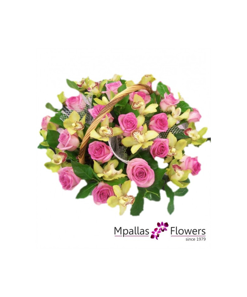 Καλάθι με Ορχιδέες Cymbidium & Τριαντάφυλλα