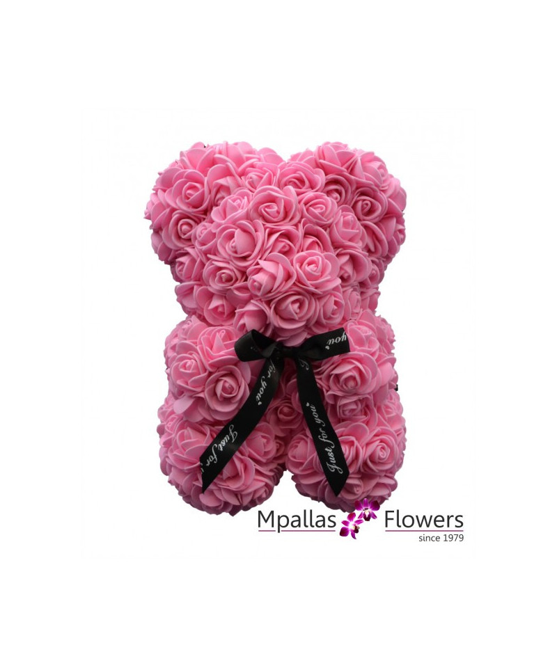 Αρκουδάκι από τριαντάφυλλα σε ροζ χρώμα